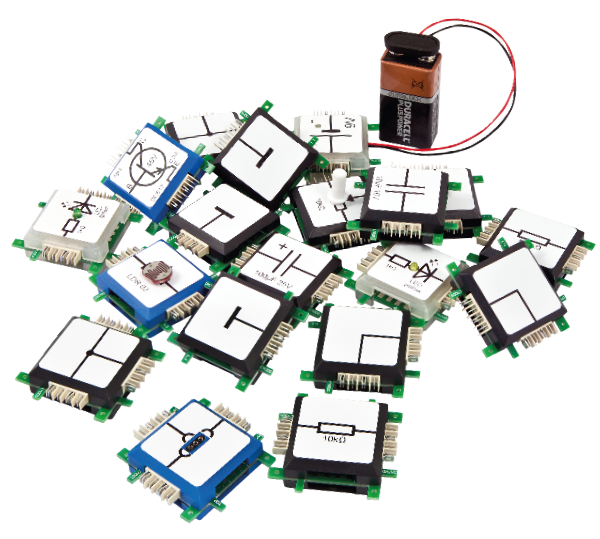 El Set Básico de Brick’R’knowledge ofrece una introducción sencilla a la electrónica y muestra con sus 19 Bricks las variables y funciones más importantes.